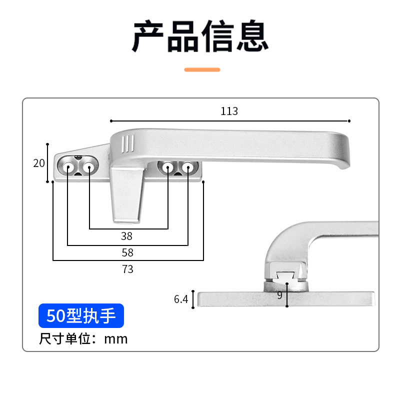 铝合金平开窗窗户把手手柄推拉窗执手配件断桥铝门窗单点锁扣50型
